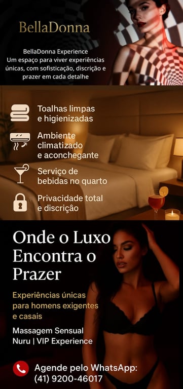 No Belladonna, prezamos pela discrição, respeito e qualidade em cada detalhe. Nosso compromisso é oferecer um atendimento de alto padrão, onde você se sinta à vontade, valorizado e completamente imerso na experiência.